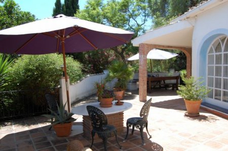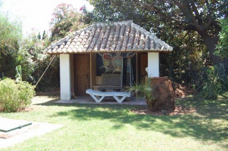 VILLA ENCANTADORA en la carretera de Fuengirola a Mijas. 5 dormitorios, 4 baños, salón-comedor, cocina equipada, estudio-apartamento independiente , piscina, amplias terrazas, jardÃn maduro.