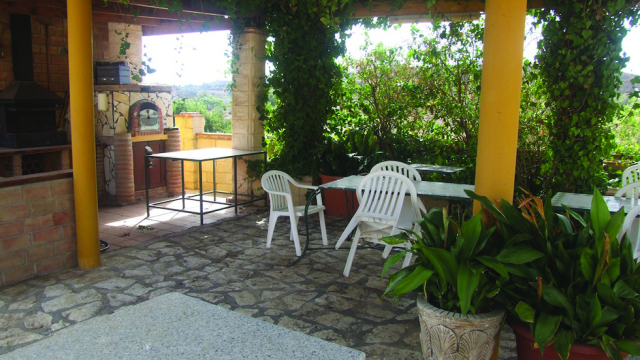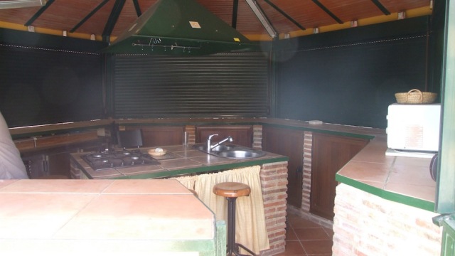 La casa en sà se sentó en una parcela de 9000m2 de terreno y se distribuye de la siguiente manera. La entrada a la casa le conduce a través de un luminoso jardÃn de invierno. La amplia sala de estar con una hermosa chimenea y techos altos con vigas y la cocina son un punto focal central de la casa. Los 5 dormitorios y 2 baños se ramifican a partir de esta área. Los dormitorios tienen un nivel muy alto con la inclusión de armarios empotrados en todas ellas.